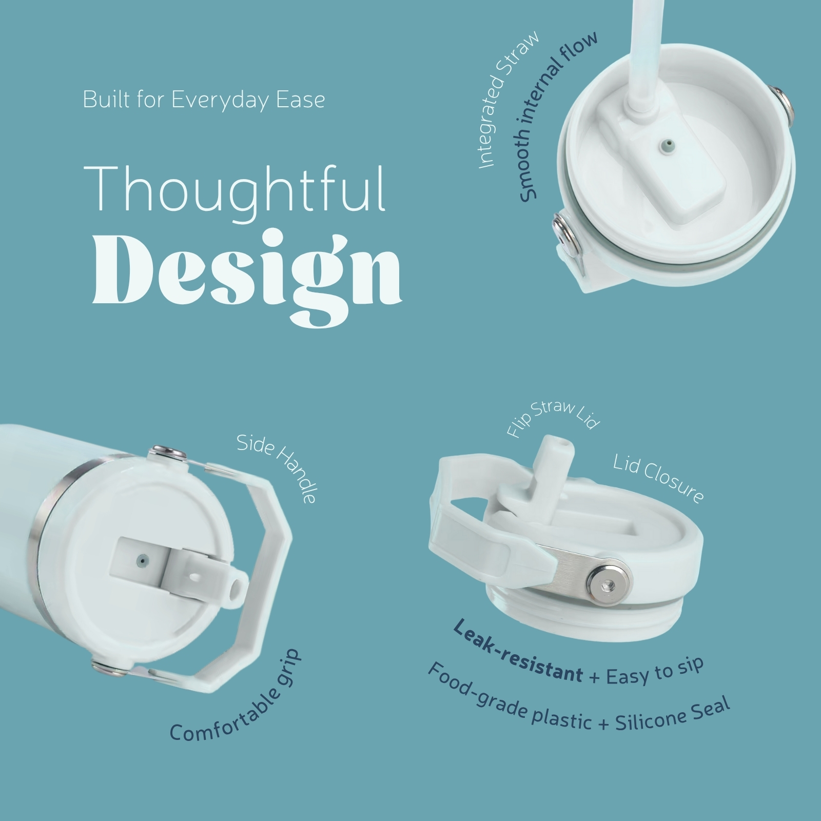 Its vivid color is balanced with thoughtful design: a smooth flip straw lid, easy-carry handle, and an insulated build that keeps the momentum going.