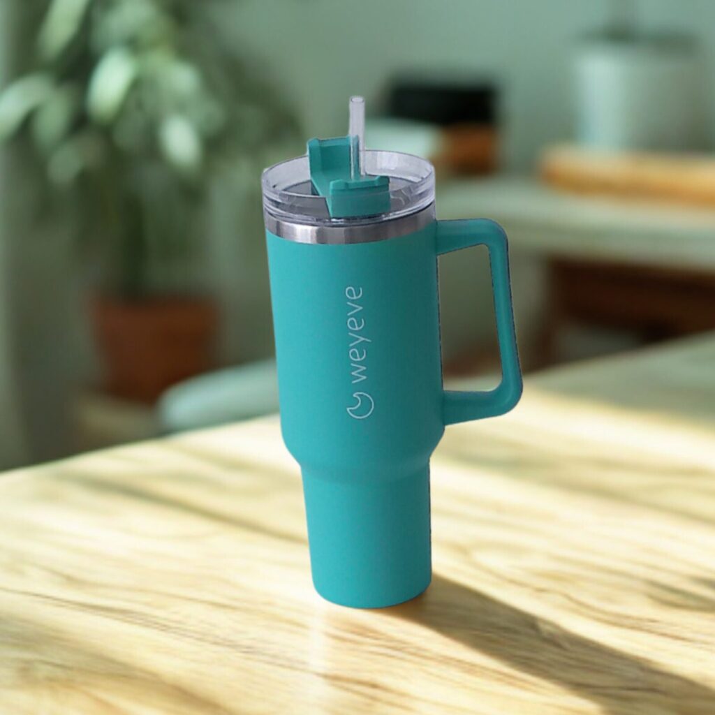 A tumbler designed to move with you. The Weyeve 40oz Lake Green Mug brings a cool, refreshing calm into everyday moments—with a clean handle, versatile lid system, and a color palette inspired by the stillness of water.