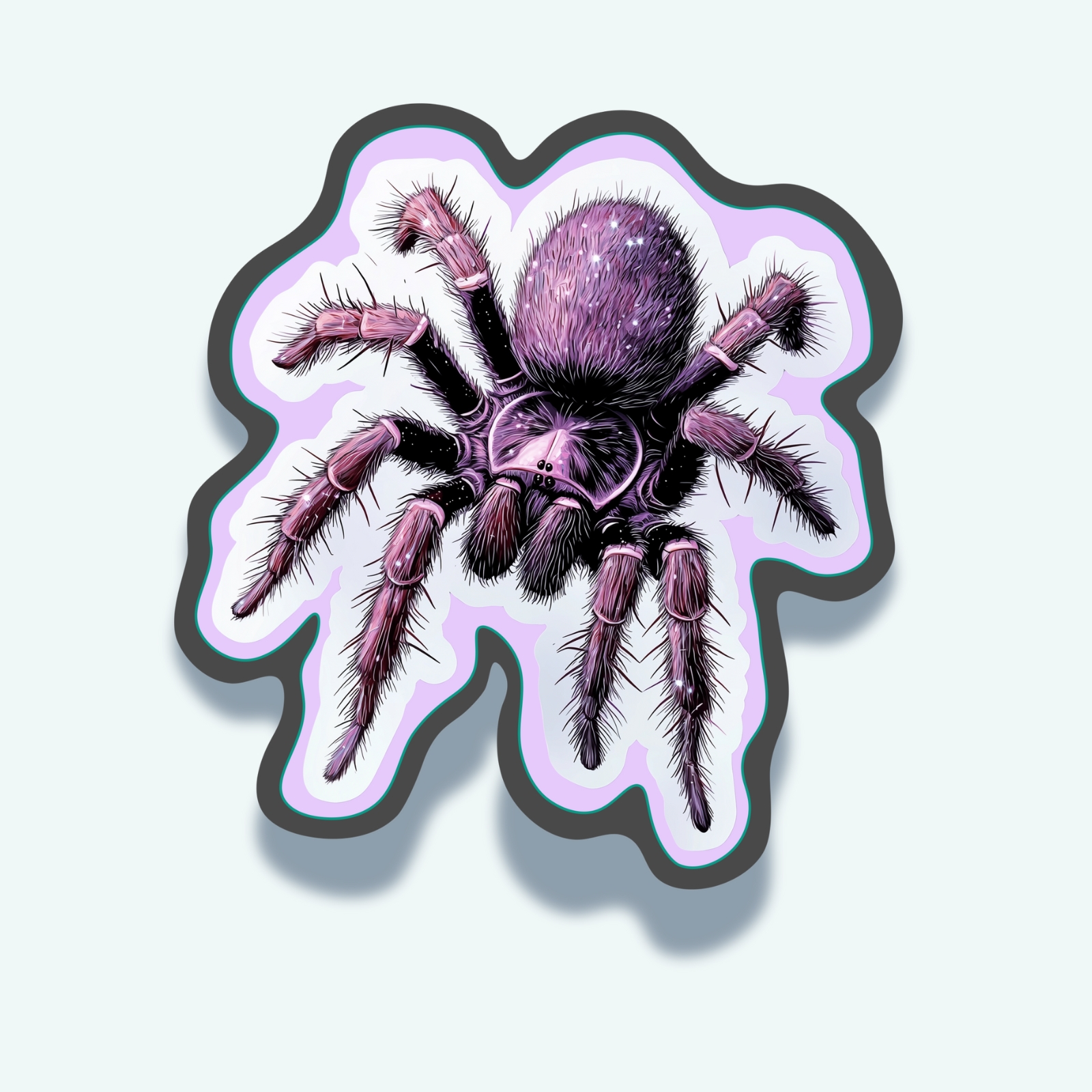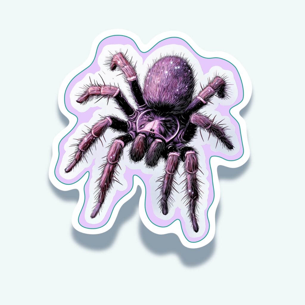 A mystical spider design in dark purple tones, glowing with a cosmic aura. Perfect for Halloween, spooky décor, or arachnid lovers.