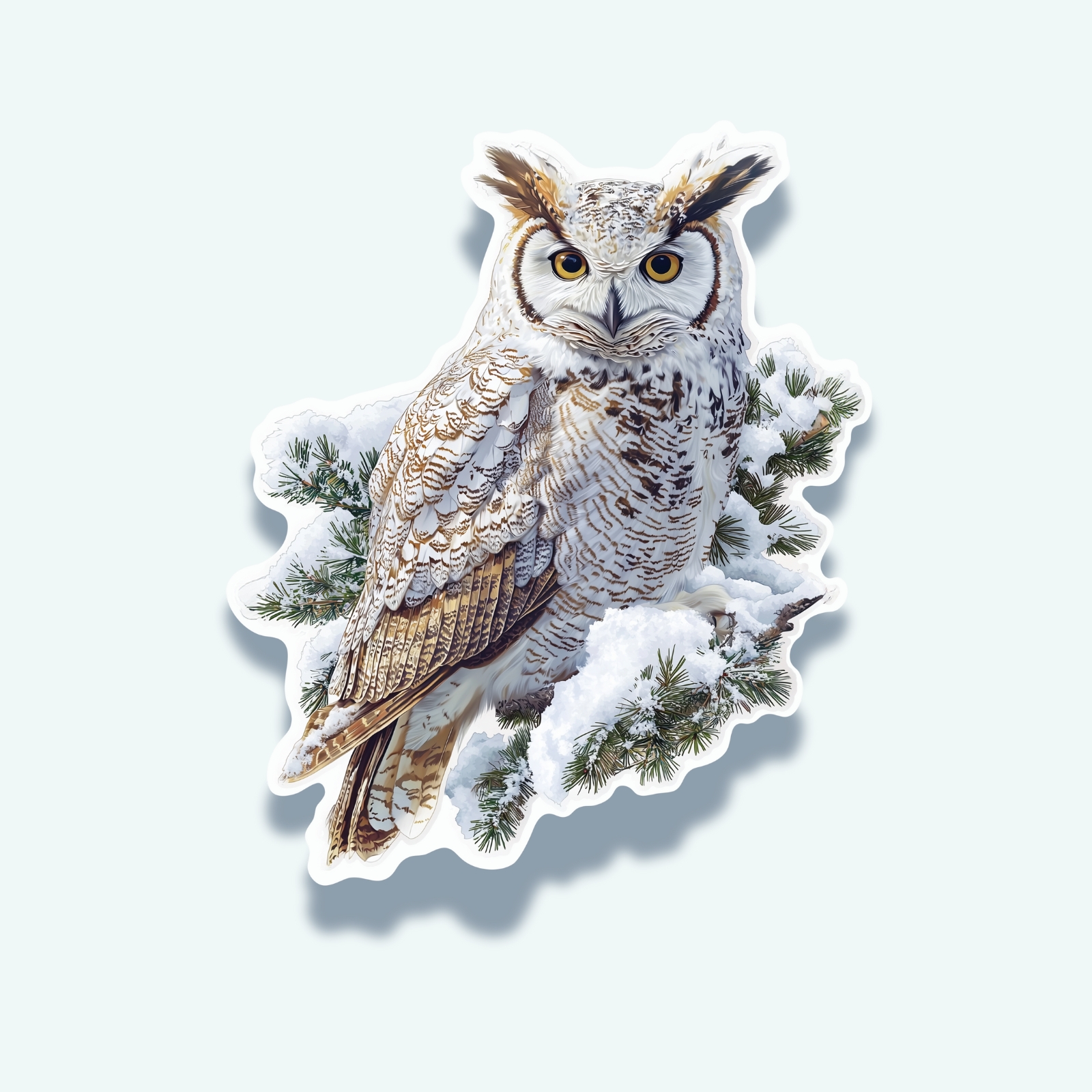 Great Horned Owl in Snow – Forest Guardian Sticker