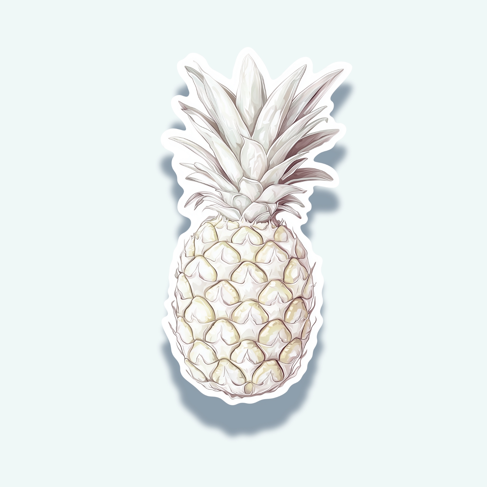 Rare and striking, the White Pineapple Sticker showcases a tropical fruit in its unique pale cultivar form. A symbol of hospitality, abundance, and joy, it adds an exotic twist to your collection.