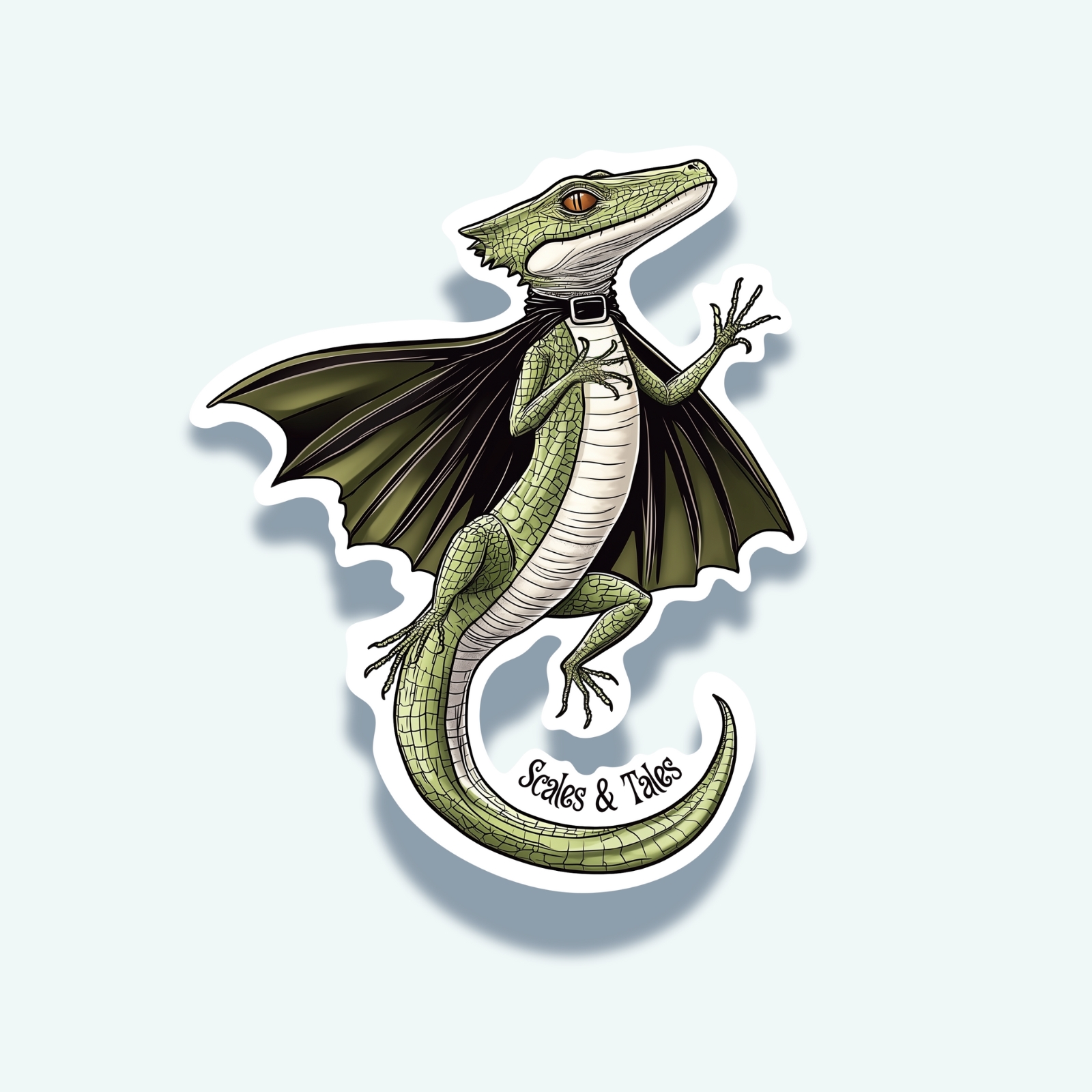 A daring little draco with a gothic twist. This winged lizard soars between myth and moonlight, wearing a tiny cape and a confident grin. A nod to every creature who dares to be both wild and whimsical. Printed on durable matte vinyl using eco-conscious inks, perfect for notebooks, bottles, or your next adventure gear.