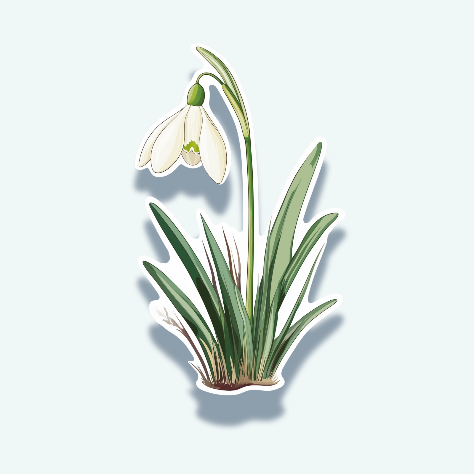 Delicate and hopeful, the Snowdrop Sticker shows the first blooms of spring. With its nodding white petals, it symbolizes renewal, resilience, and quiet optimism, making it a gentle reminder of brighter days ahead.