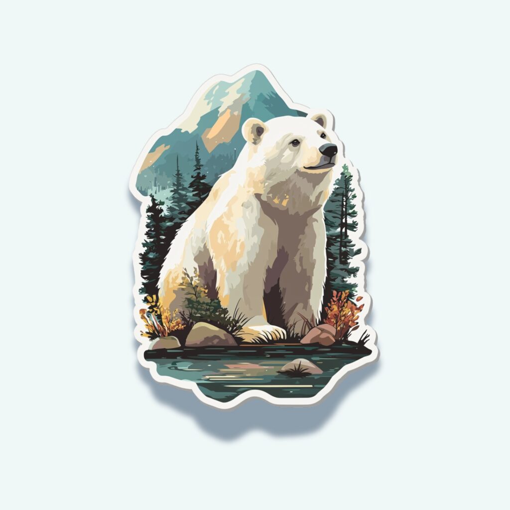Illustrated against a backdrop of towering evergreens and mountain peaks, the bear’s calm presence reflects the balance of strength and gentleness found in untouched wilderness. Perfect for adventurers, wildlife lovers, and anyone who finds beauty in nature’s rarities.