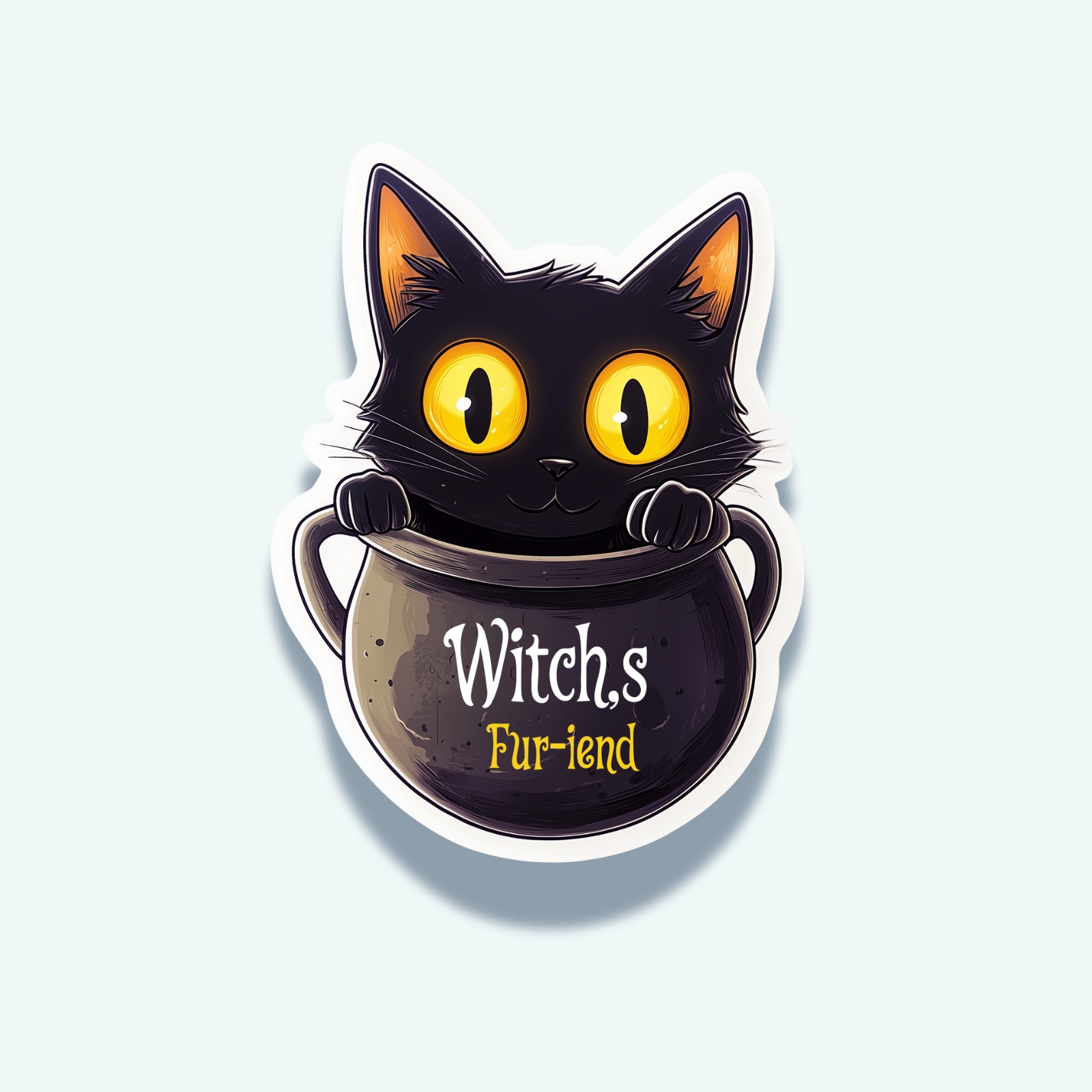 Witch’s Fur-iend – Black Cat Cauldron Sticker
